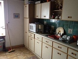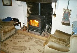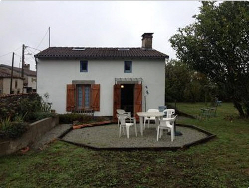A French property private sale by the owner comprising 2 cottages converted into one dwelling. The larger of the buildings is divided into 2 rooms of equal area the kitchen/ dining area and lounge. The kitchen is equipped with modern units, large fridge, freezer, cooker (bottled gas), microwave and a small wall mounted mini oven/grill/hotplate that is very useful. The tiled floor and oak panelled dining area with a window overlooks the garden. A door leads into the lounge which has a large granite open fireplace fitted with an 11kw Godin wood burning stove (wonderful). A fully glazed stable door leads into the garden.