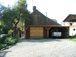 A garage and a carport are at the side of the house. Attached to the other side is a barn, with a stonebuilt outbuilding to the front. The garden is mostly to the side with a courtyard in front of the property.